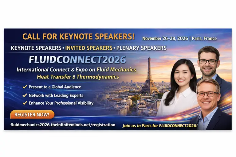 FLUIDCONNECT2026 is een internationale conferentie voor wetenschappers, ingenieurs en industrie-professionals die werken op het gebied van vloeistofmechanica, warmteoverdracht en thermodynamica. De conferentie vindt plaats in Parijs en brengt deelnemers uit de hele wereld samen. Het programma richt zich op actuele ontwikkelingen in vloeistofdynamica, thermische wetenschappen en energiesystemen.