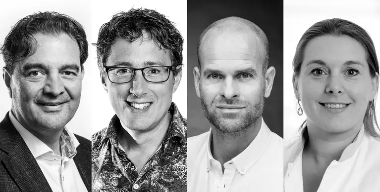 Wouter Hart is oprichter van Verdraaide Organisaties en auteur van de gelijknamige bestseller. Erben Wennemars is voormalig 8-voudig wereldkampioen schaatsen en vast gezicht bij de NOS. Gabriël Anthonio is bijzonder hoogleraar aan de Rijksuniversiteit Groningen en partner bij de Galan Groep. Karen Keijsers is klinisch geriater in het Jeroen Bosch Ziekenhuis en pionier in het toepassen van de bedoeling binnen de ziekenhuiszorg.